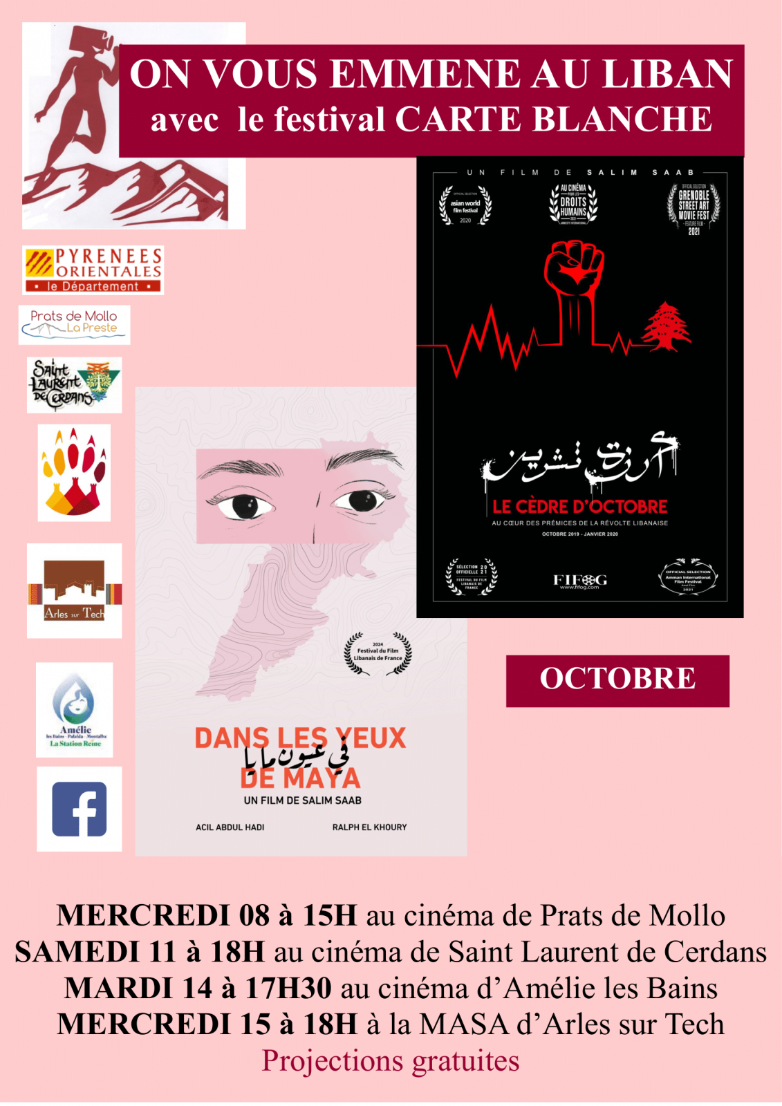 Dans le cadre du Festival Carte Blanche, venez découvrir deux œuvres marquantes du réalisateur Salim Saab : Le Cèdre d'Octobre et Dans les yeux de Maya.
