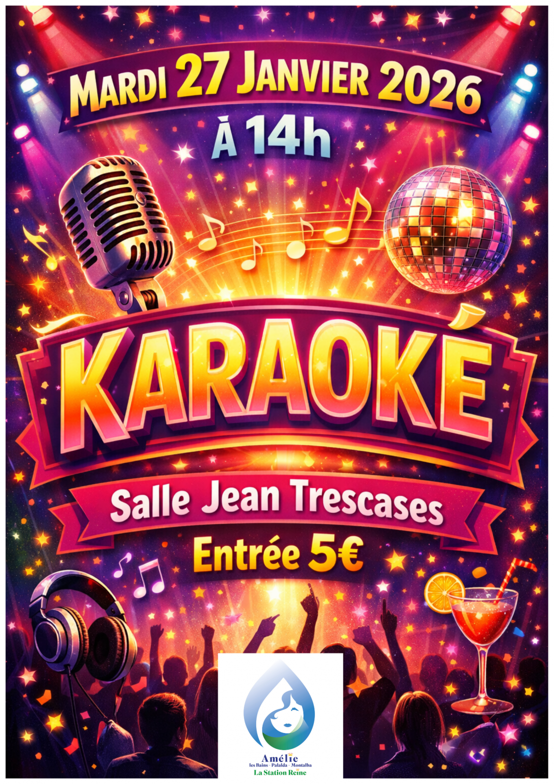 Karaoké à la salle Jean Trescases, mardi 27 janvier à 14h : un moment convivial pour chanter, s’amuser et partager de la bonne humeur ensemble.