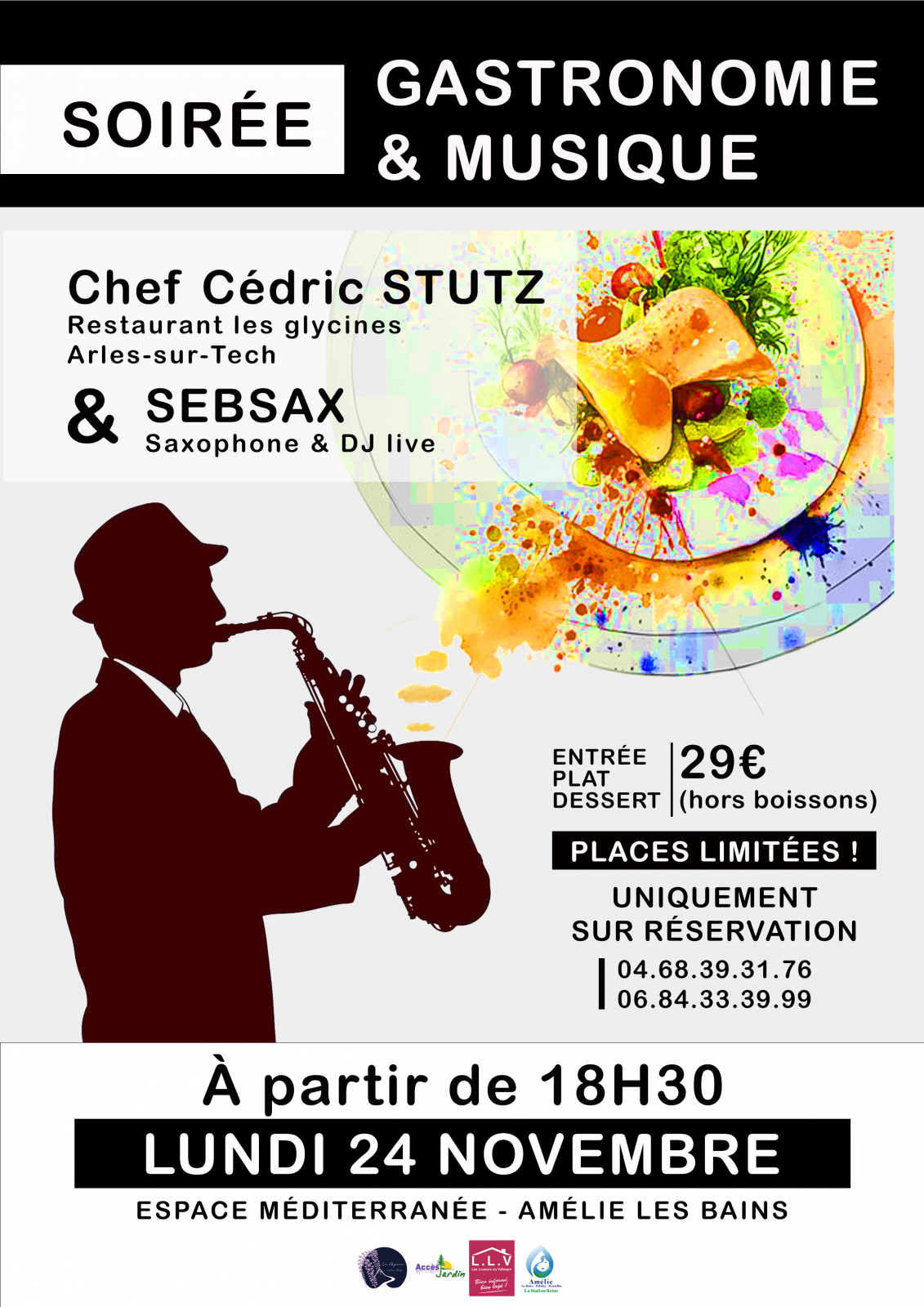 Tarif : 29 € (entrée, plat, dessert – hors boissons)