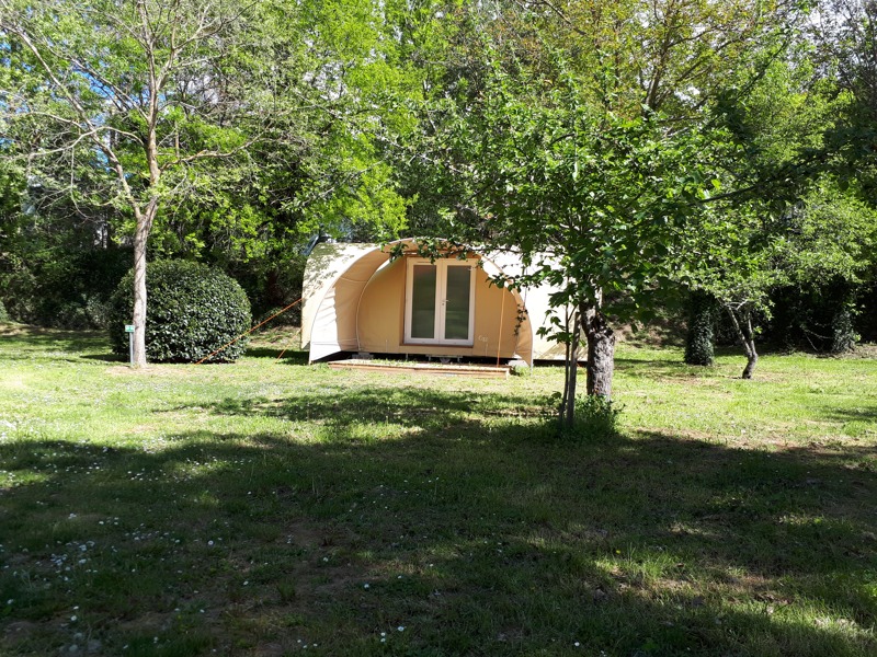 Camping familial composé de 76 emplacements sur plus de 2,5 hectares de terrain dans un cadre de verdure.