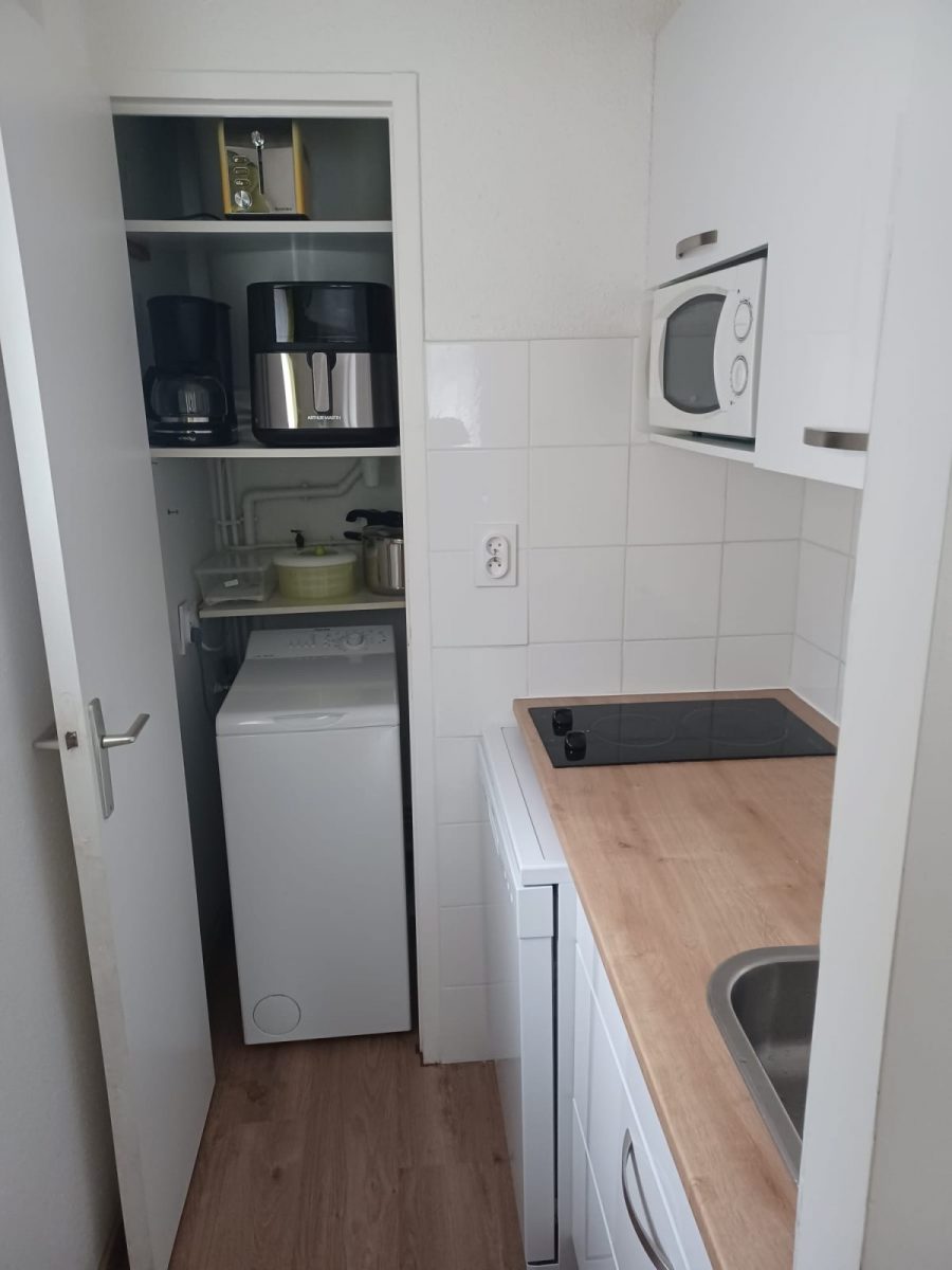 A 500 m du centre-ville, coquet studio de 22 m² + terrasse de 5 m² situé au 1er étage d'un résidence sécurisée avec ascenseur. Composé d'une entrée, une pièce principale avec lit et convertible donnant sur terrasse, une cuisine équipée tout confort, une salle d'eau avec WC, lavabo et sèche-cheveux. TV écran plat, WIFI et lave-linge. Linge de maison en option. Exposition sud-ouest, parking privatif. Climatisation.