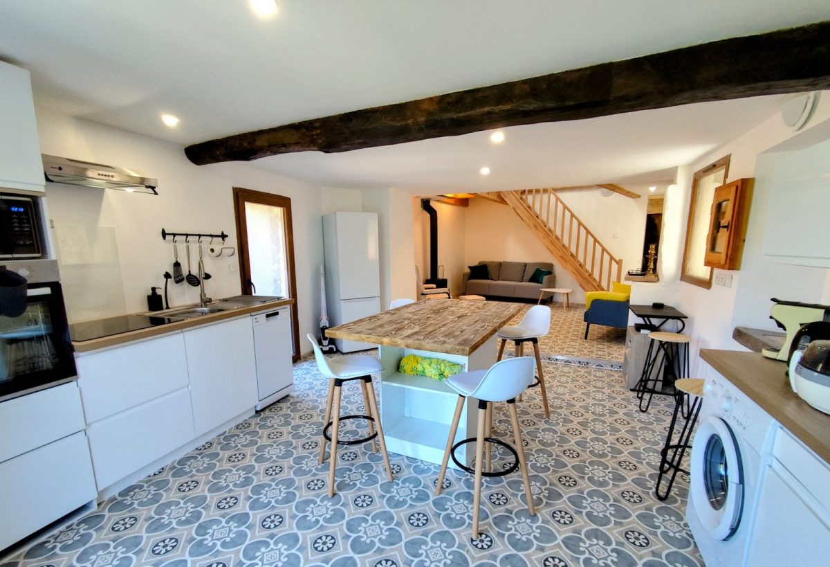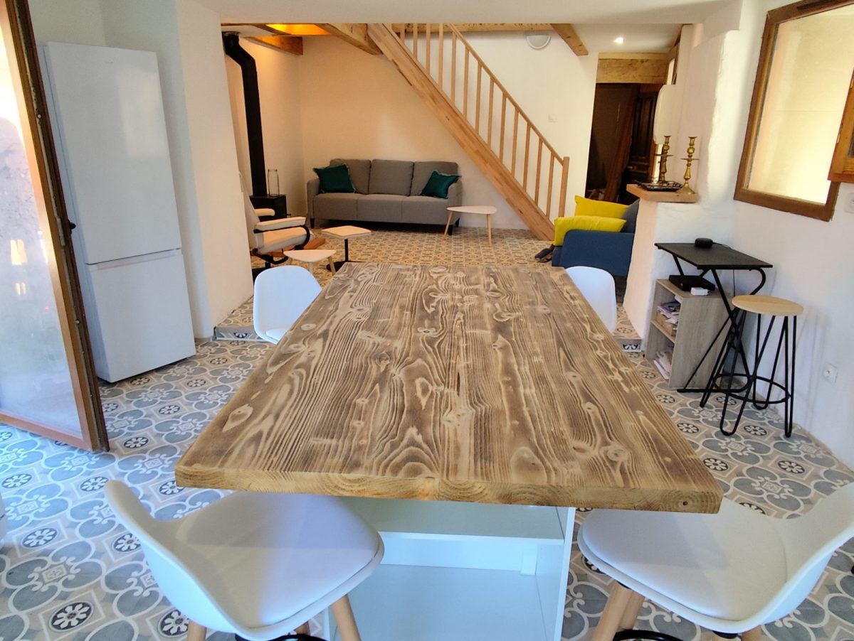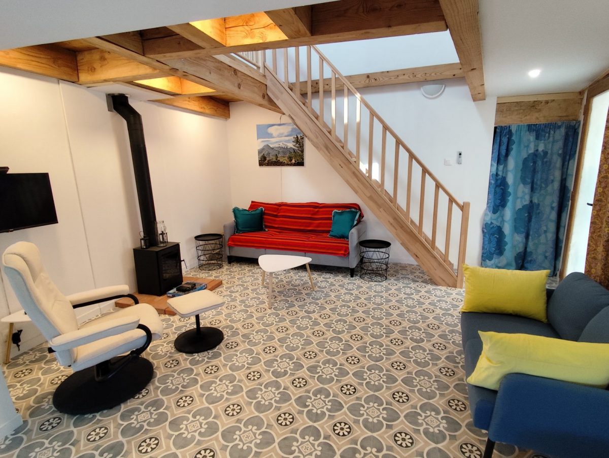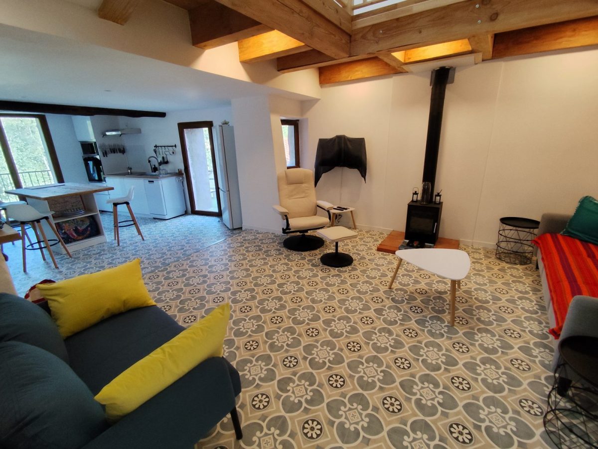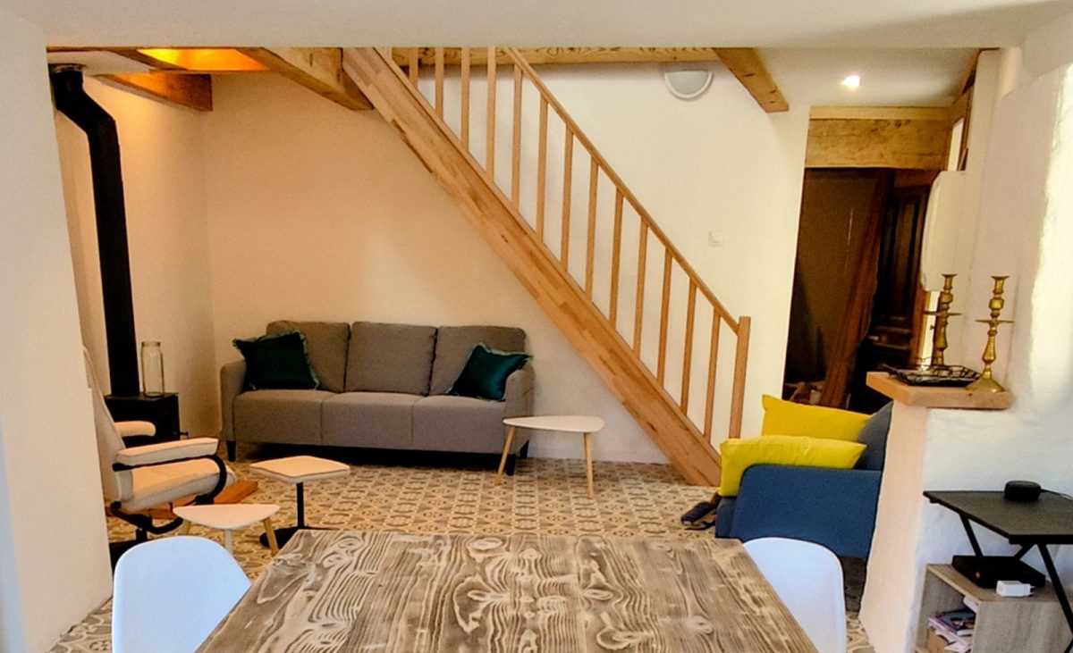 La rénovation de la moitié de la grange permet de vous offrir aujourd’hui un logement confortable et de caractère. L'équipement haut de gamme comprend la fibre optique, un lave-vaisselle, un lave-linge, une Smart TV, des ventilateurs et le chauffage (poêle à bois et radiateurs électriques).