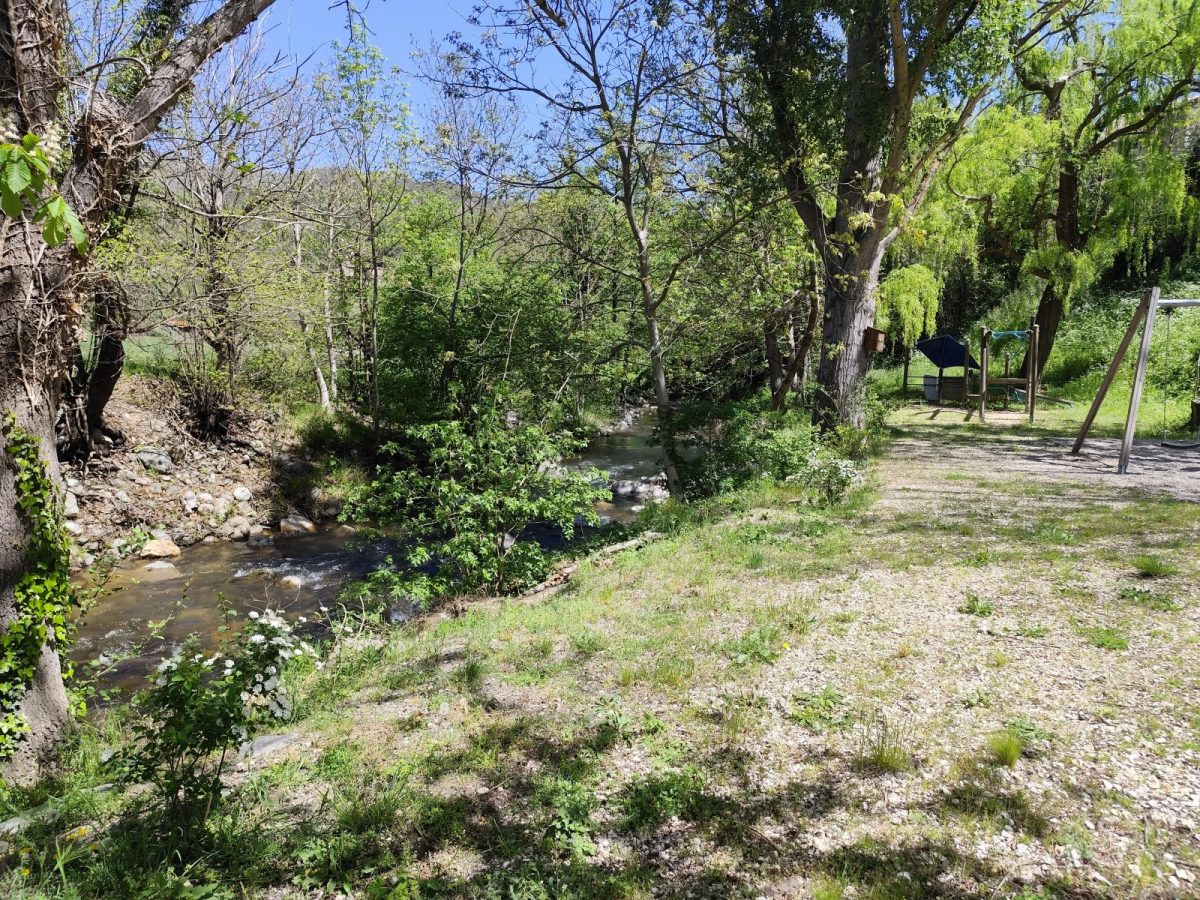La bâtisse surplombe une petite rivière et dispose d'une aire de pique-nique.