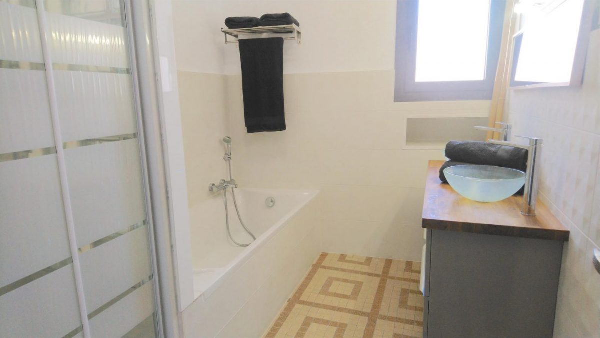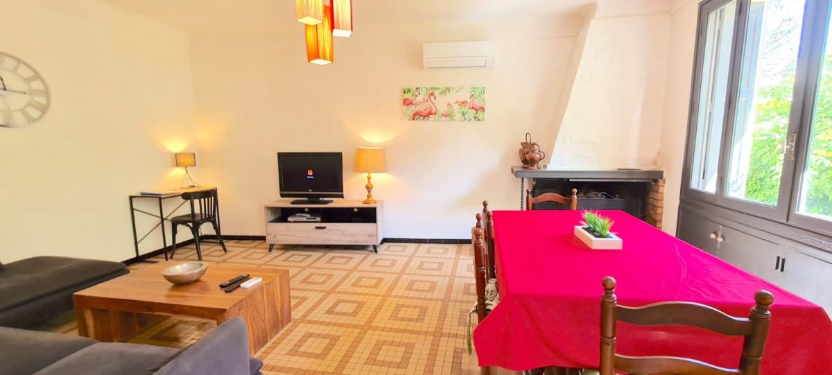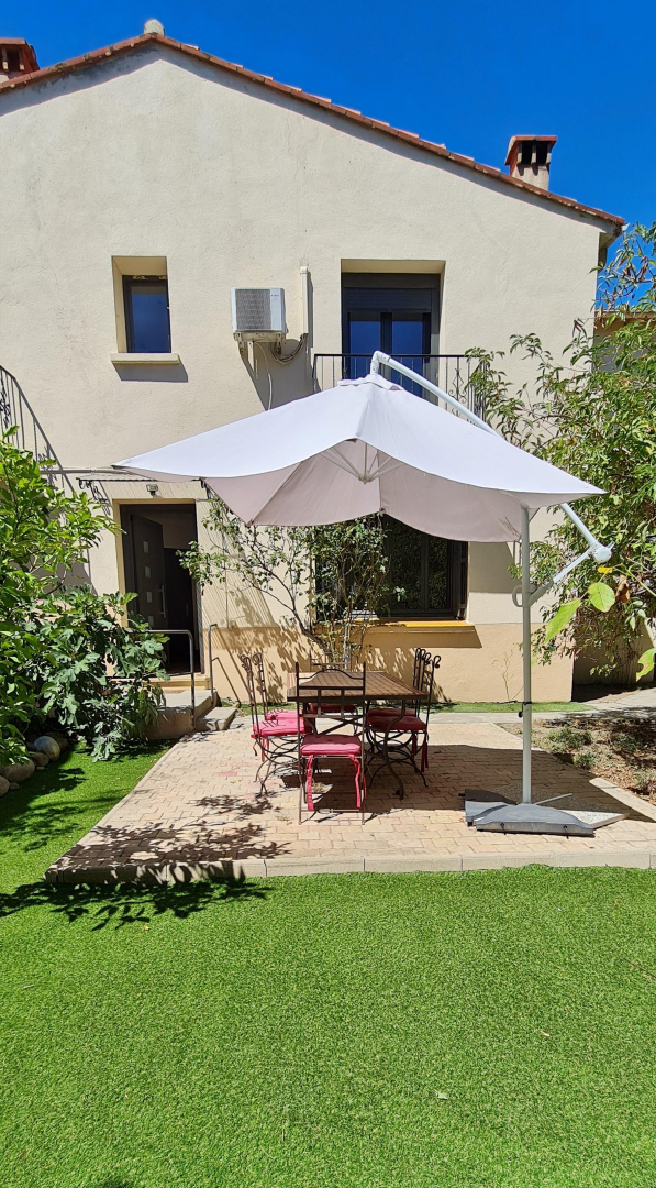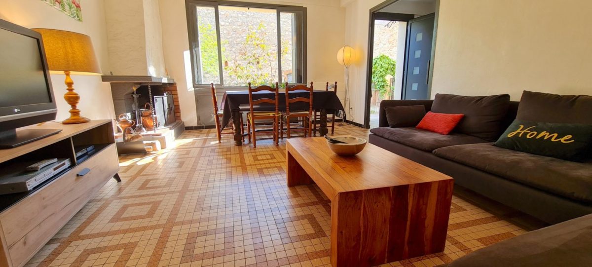 Au coeur du village, mais au calme, ce gîte a été entièrement rénové. C'est une base idéale pour une large découverte du pays catalan jusqu'à Barcelone et pour la pratique de nombreuses activités sportives en pleine nature. Maison des années 50, complétement rénovée. RDC : cuisine avec Frigo américain , salle à manger avec séjour climatisé (cheminée), wc. 1er étage : 1 chambre climatisé (2 lits 1 pers), 1 chambre climatisé (2 lits 1 pers), 1 chambre climatisé(1 lit 2 pers), salle de bains avec baignoire, douche et double vasque. Wc indep. Grand jardin clos (salon de jardin, bains de soleil). Garage (pour un seul véhicule type twingo). Parkings communaux à proximité.
