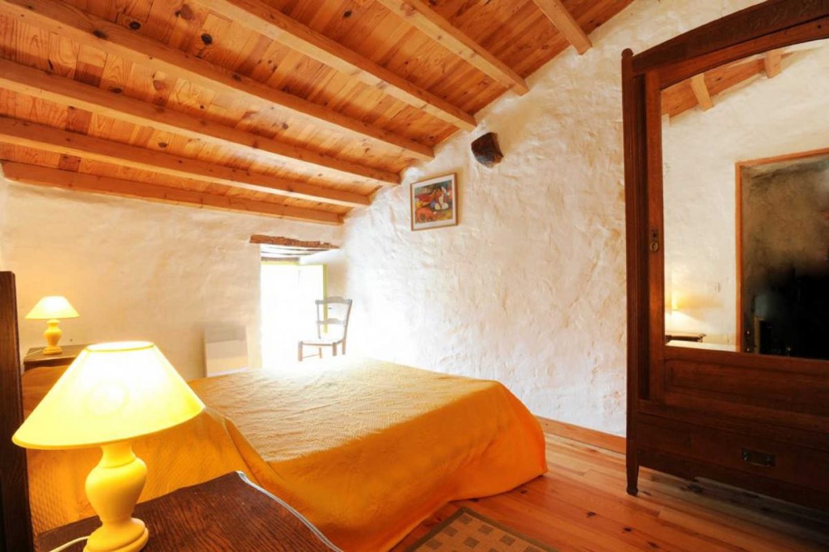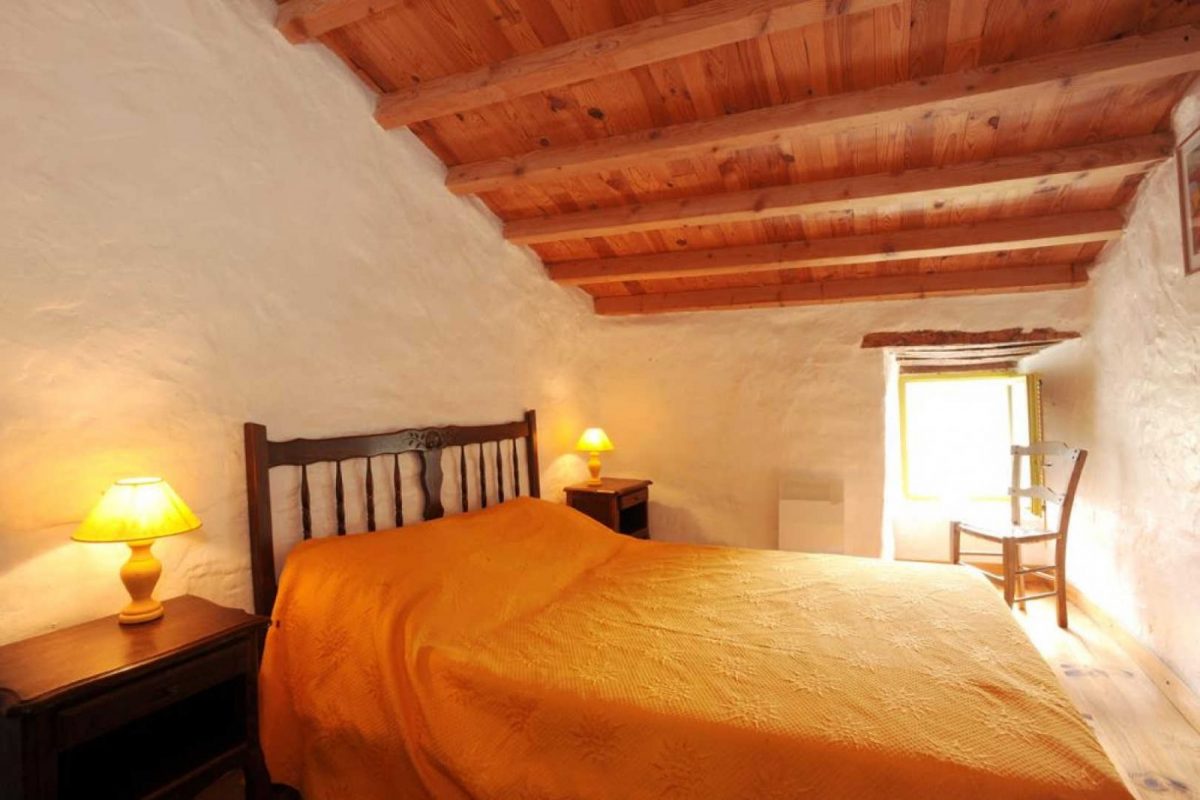 Chambre 2 : 1 lit 140 x 190 avec accès par petit escalier étroit en pierre de 5 marches