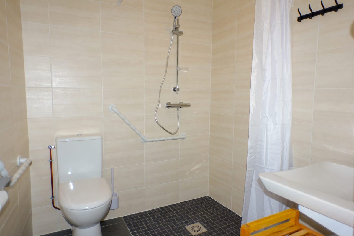 La salle de bains est équipée d'installations facilitant l'usage pour les personnes à mobilité réduite, assurant un environnement confortable et sûr.