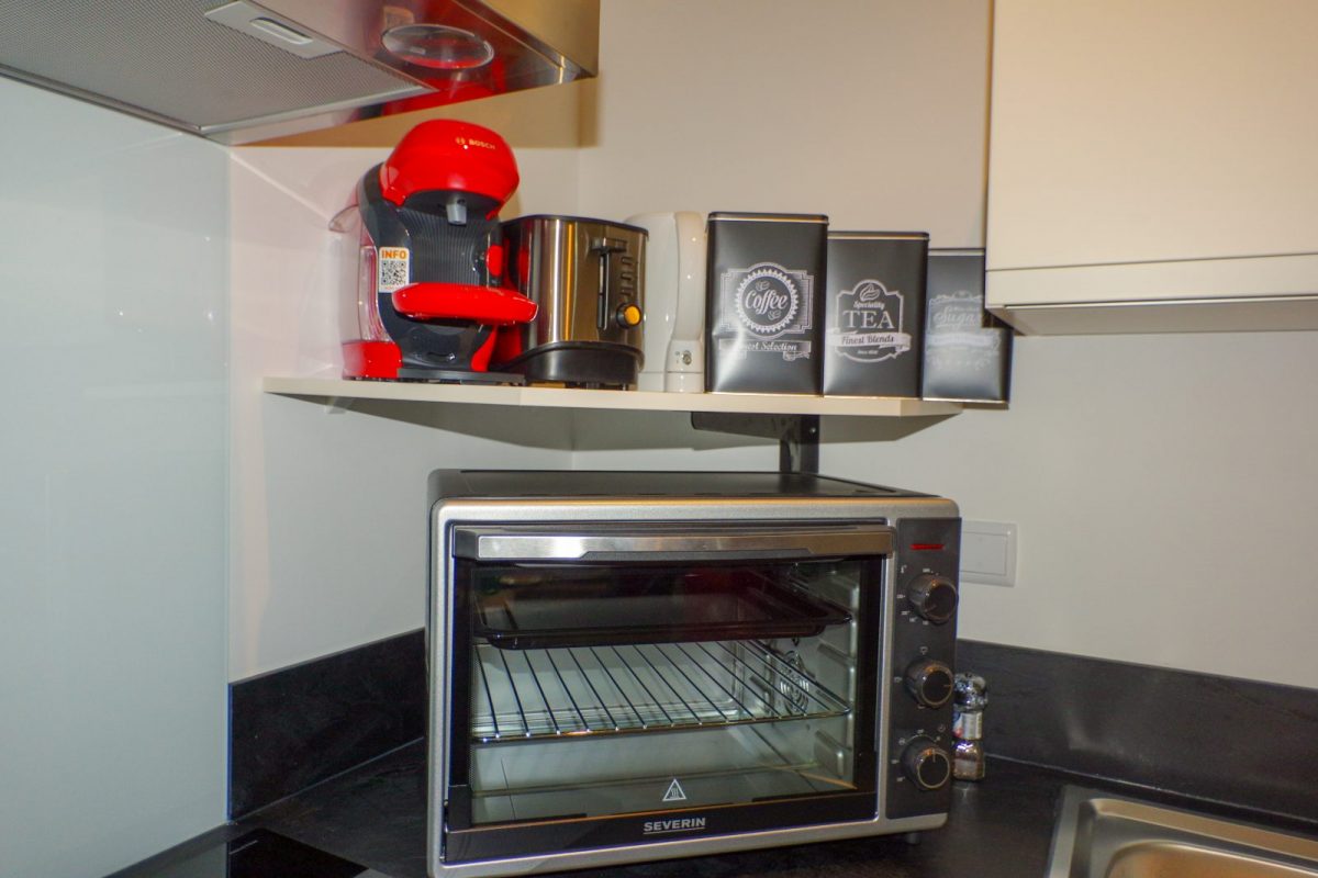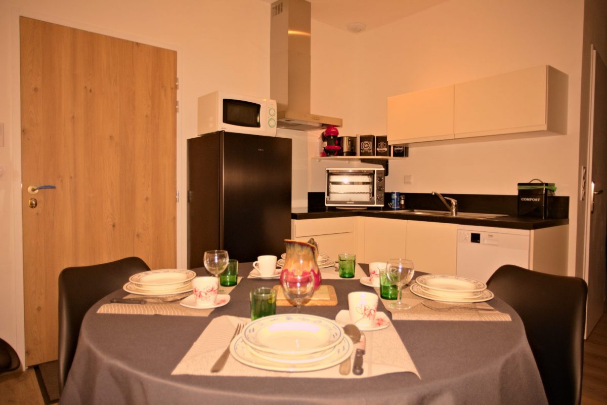 La kitchenette, intégrée de manière pratique, permet de préparer des repas sans effort.
