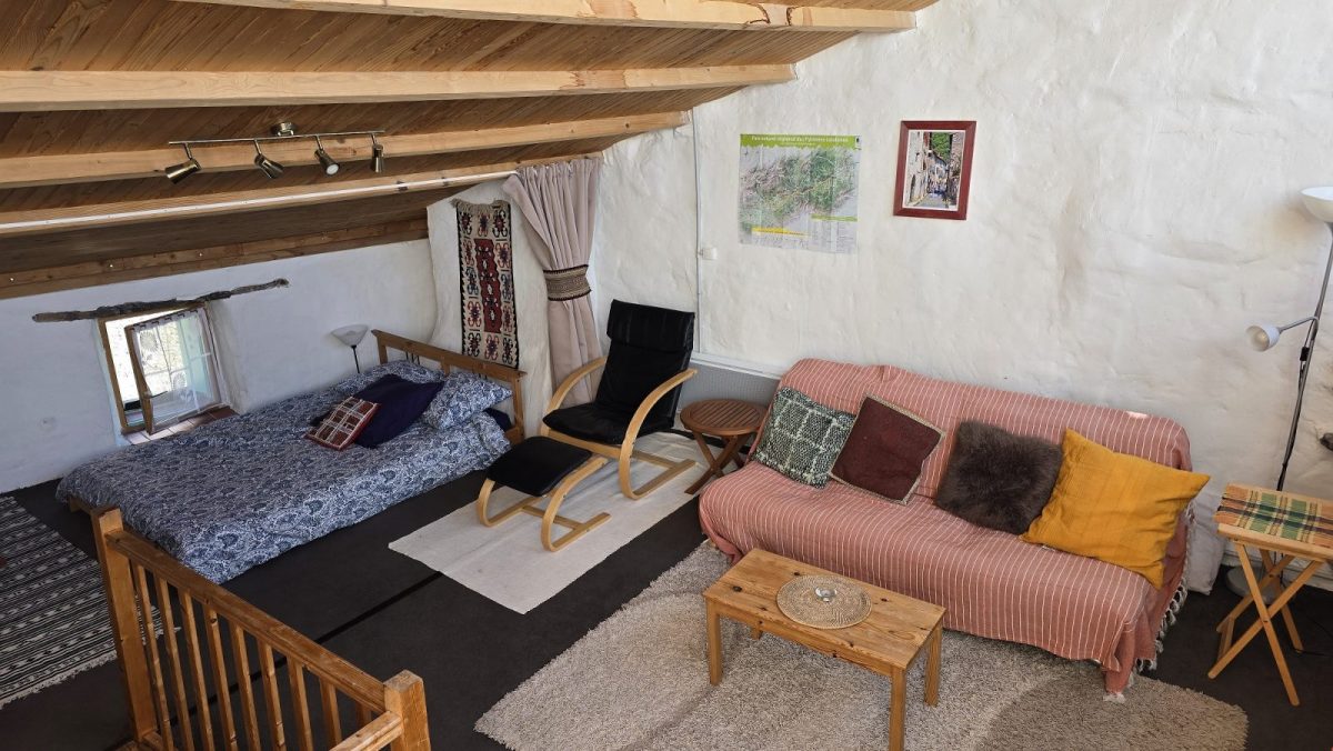 cuisine/salle à manger, une chambre à deux lits, une salle de bains au rez-de-chaussée, un