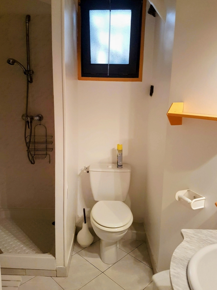 Salle d'eau avec douche, lavabo et wc.