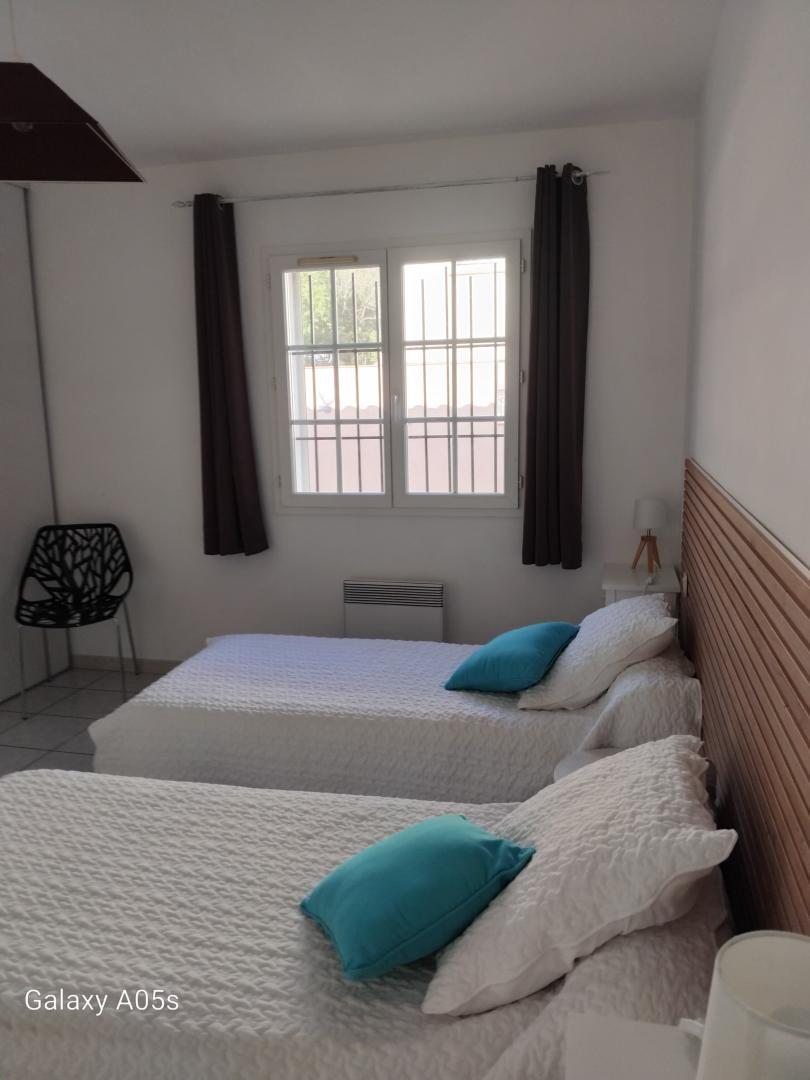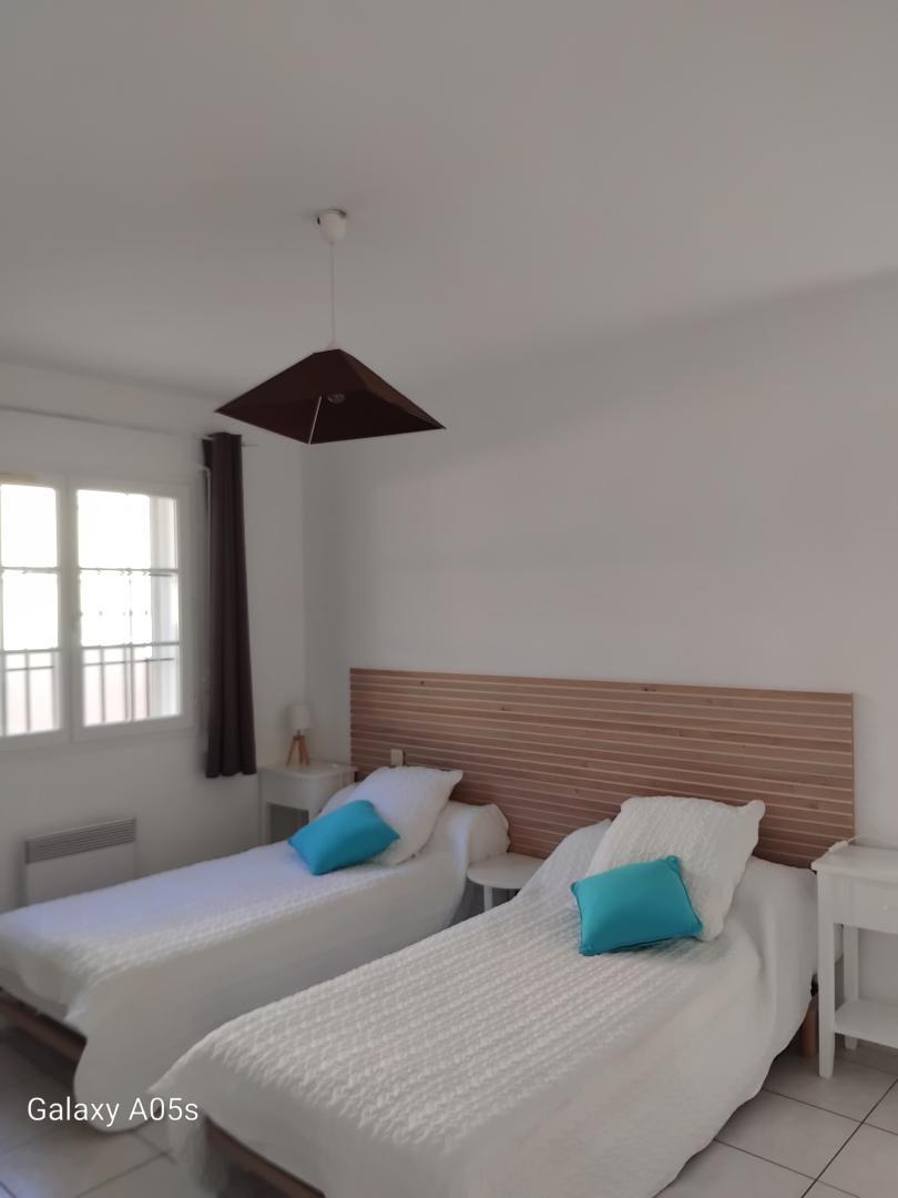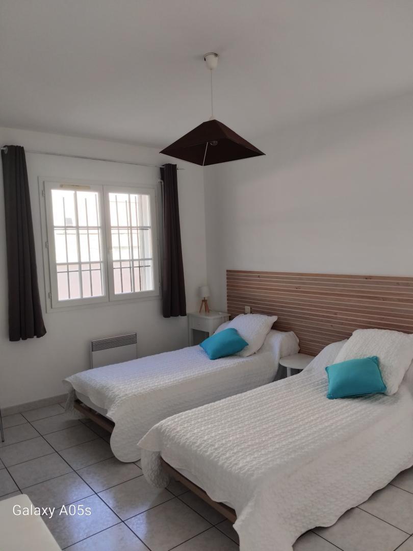 Deux chambres communicantes : une chambre avec 2 lits 90 et une chambre avec un lit 160 et sa salle d’eau atten
