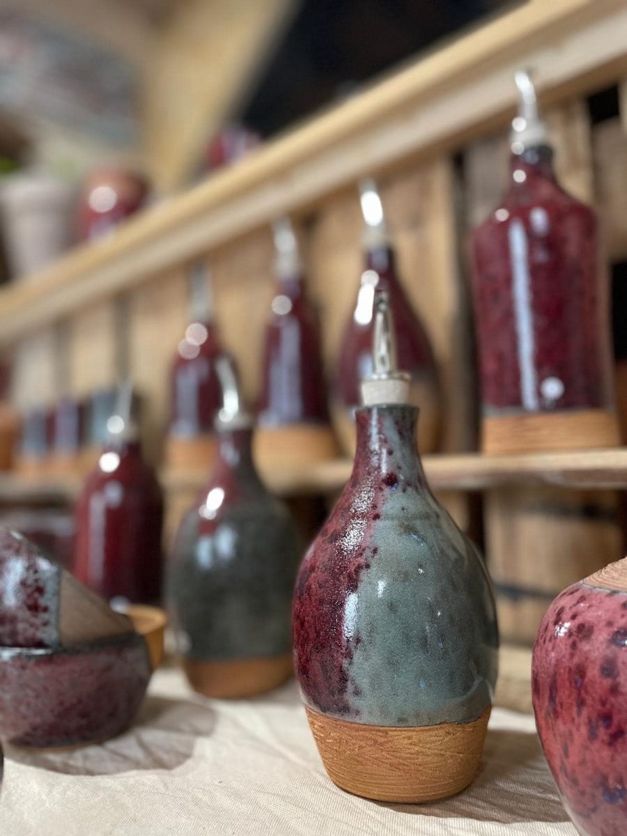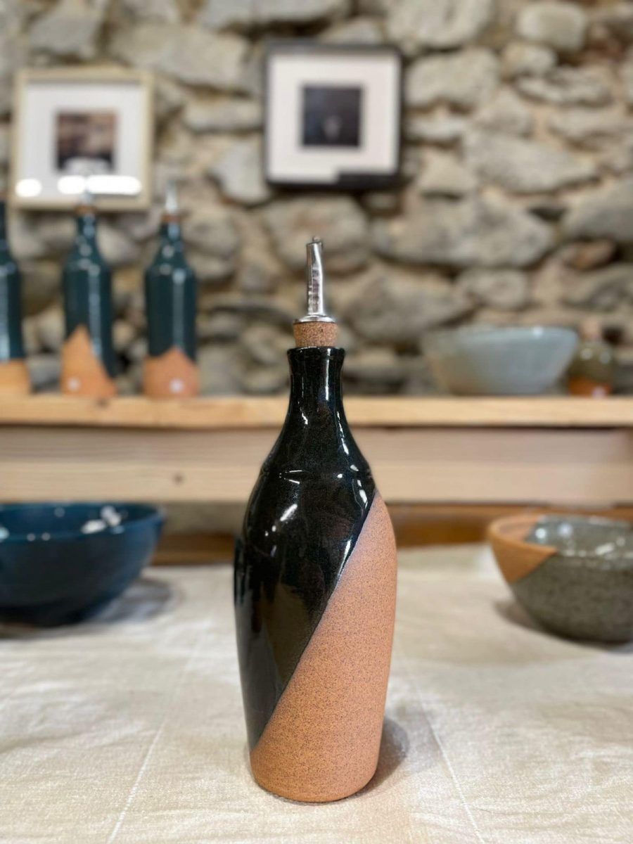 Toutes les céramiques sont réalisées et cuites à la flamme sur place, dans cette ancienne grange qui servait autrefois d'étable. Chaque pot est tourné à la main et les émaux réalisés de manière artisanale par ses soins.