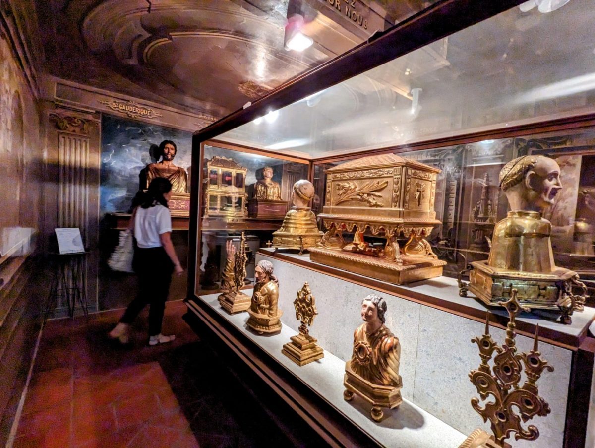 Le Trésor présente au public des reliquaires, ainsi qu'une partie du trésor paroissial (vierges romanes, gothiques, ostensoirs). D'autres objets proviennent d'anciennes églises de Prades, aujourd'hui disparues.