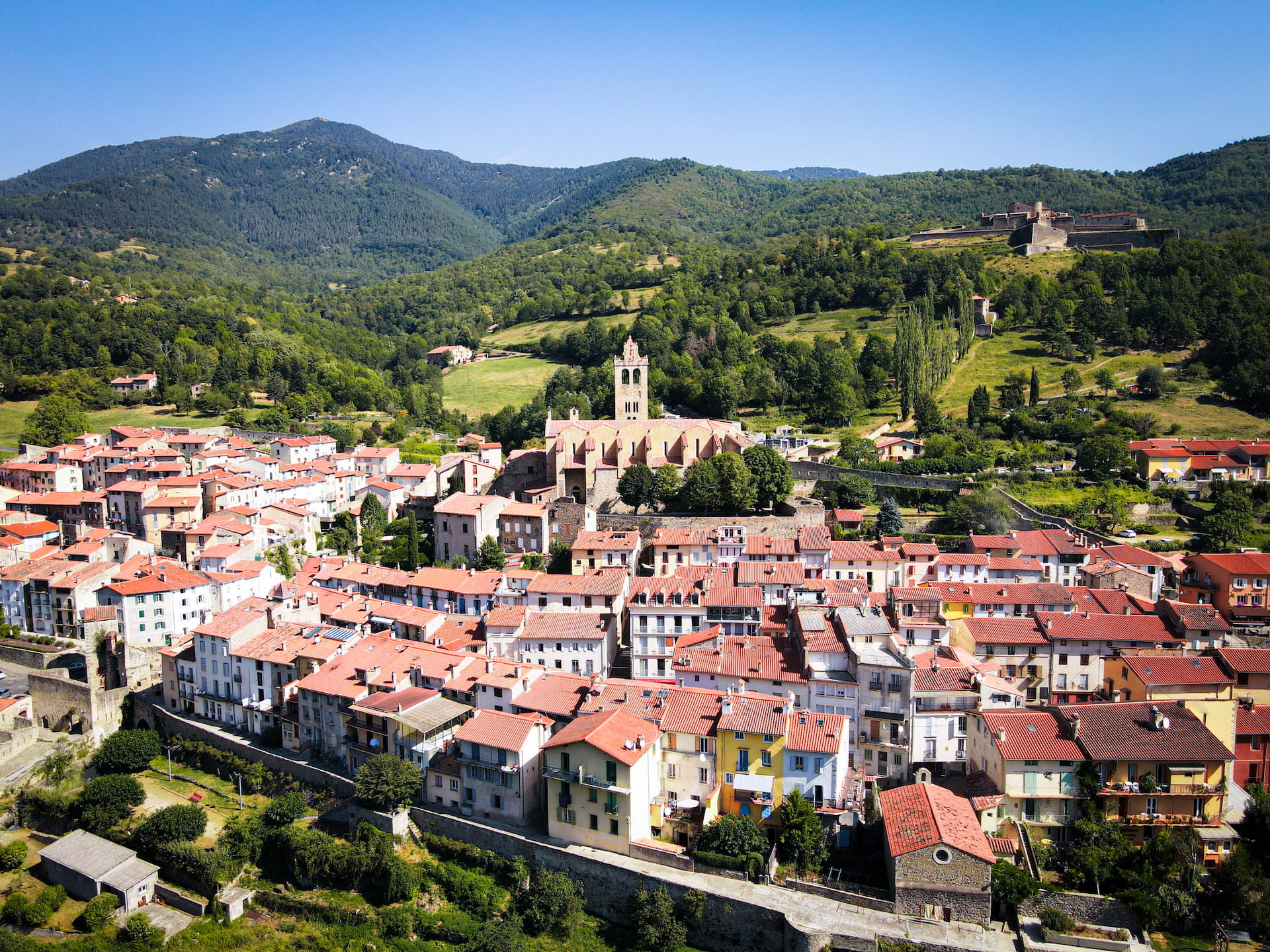 Abbaye Bénédictine fondée en 778, l’abbaye Sainte-Marie Hugues Argence ![Vue depuis le Fort de Prats-de-Mollo Admirez depuis les remparts du Fort de Prats-de-Mollo une vue panoramique sur la vallée du Tech et les montagnes pyrénéennes. Ce fort, construit pour protéger la frontière franco-espagnole, offre un cadre spectaculaire avec ses bastions et son architecture historique, surplombant le village pittoresque de Prats-de-Mollo niché dans la vallée.]()